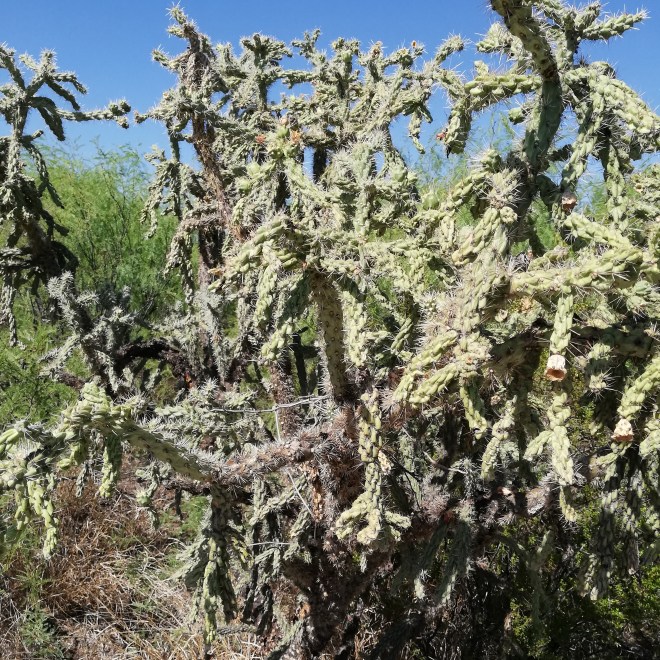| Ortiguilla (Cevallia sinuata) | Cholla (Opuntia imbricata var arborescens) |