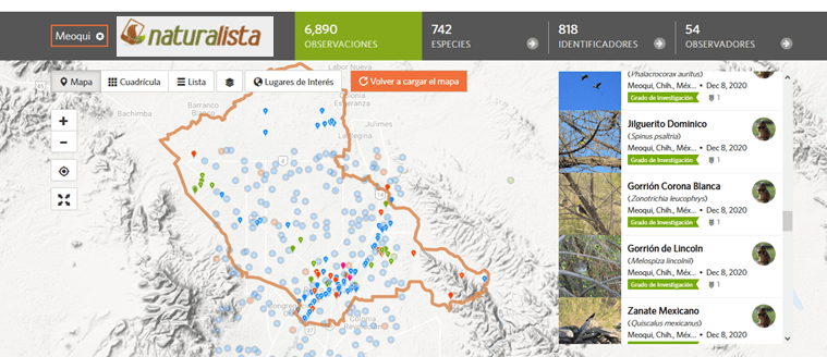En el área en la que tenemos más observaciones es Meoqui, aquí hemos observado: 177 especies de aves, 300 especies de insectos, 31 especies de arácnidos, 121 especies de plantas, 14 especies de hongos, 2 especies de anfibios, 7 especies de reptiles, 5 especies de peces y 10 especies de mamíferos. Esto es lo que ha sido reportado por miembros nuestra organización. En no pocos casos nuestros registros son los primeros para el estado y en ocasiones para el país (esto en referencia a la base de datos de Naturalista).