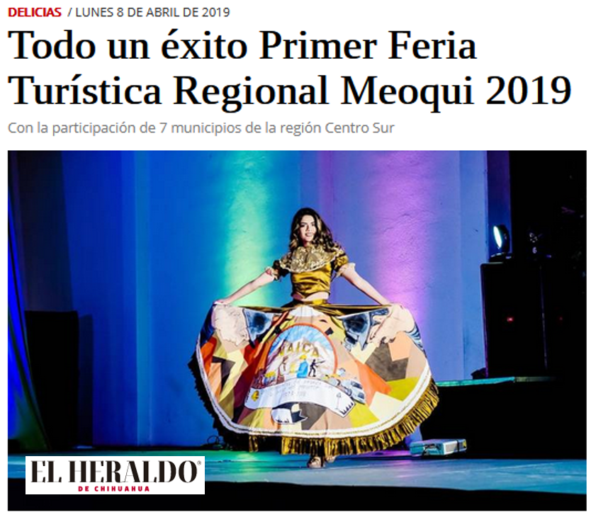30. Fuentes G. 2019. Todo un éxito Primer Feria Turística Regional Meoqui 2019. El Heraldo de Chihuahua [consultado el 11 de enero de 2021]. Disponible en https://www.elheraldodechihuahua.com.mx/local/delicias/todo-un-exito-primer-feria-turistica-regional-meoqui-2019-3295983.html#!