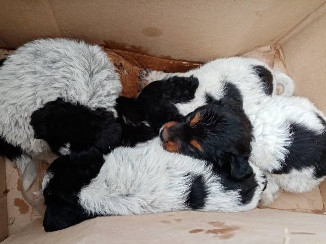 El sábado 26 de junio cerca de la 7 de la mañana un compañero de la campaña de limpieza observa a una perra cachorrita caminar torpemente por el paso provisional que está a un lado del puente del ferrocarril, la toma en sus brazos y decide colocarla en una caja de cartón cercana para poder cargarla con facilidad, grande es su sorpresa al observar 5 perritas más en la caja. Todo indica que son 6 hermanas que fueron recientemente abandonadas.