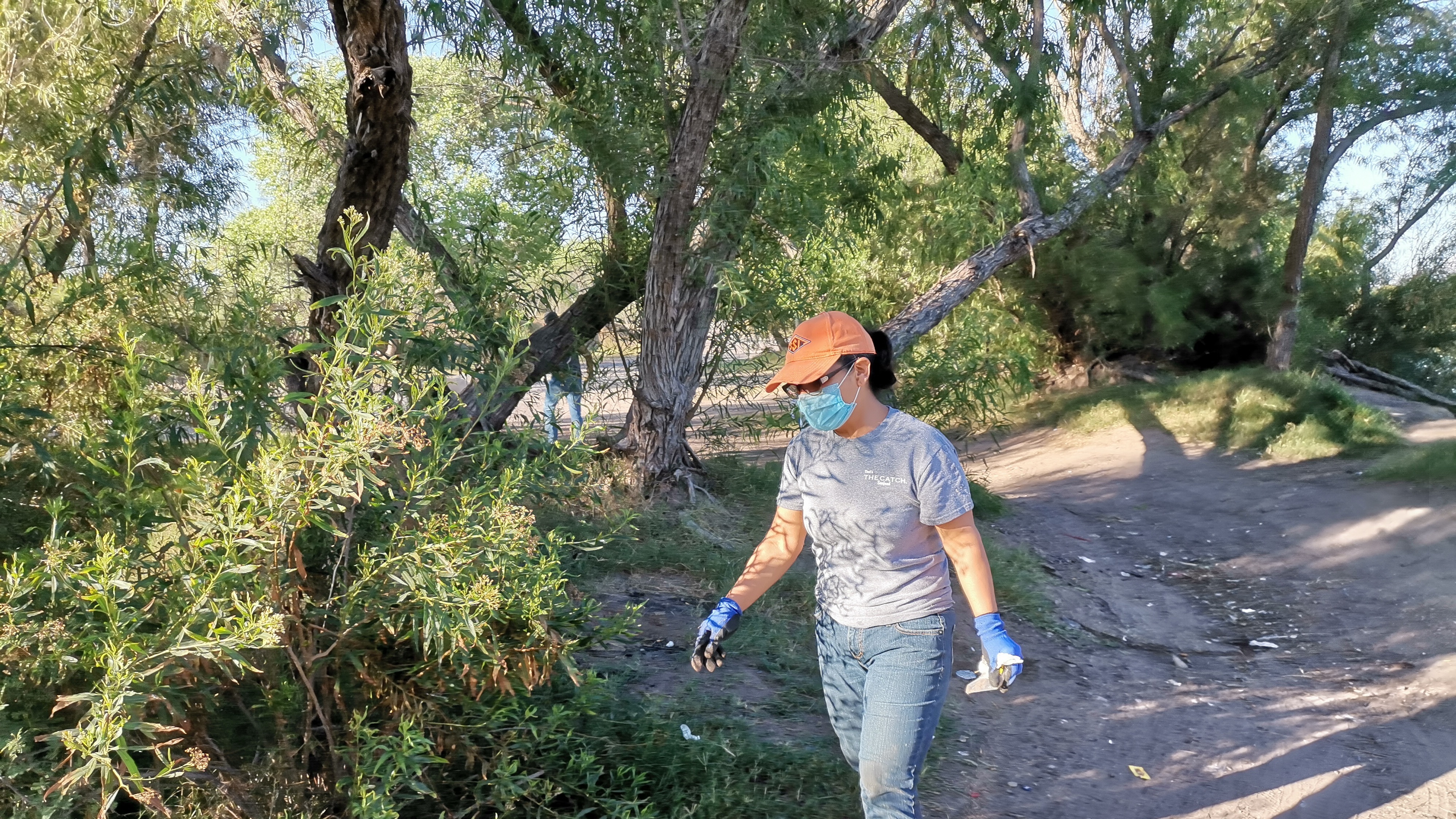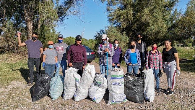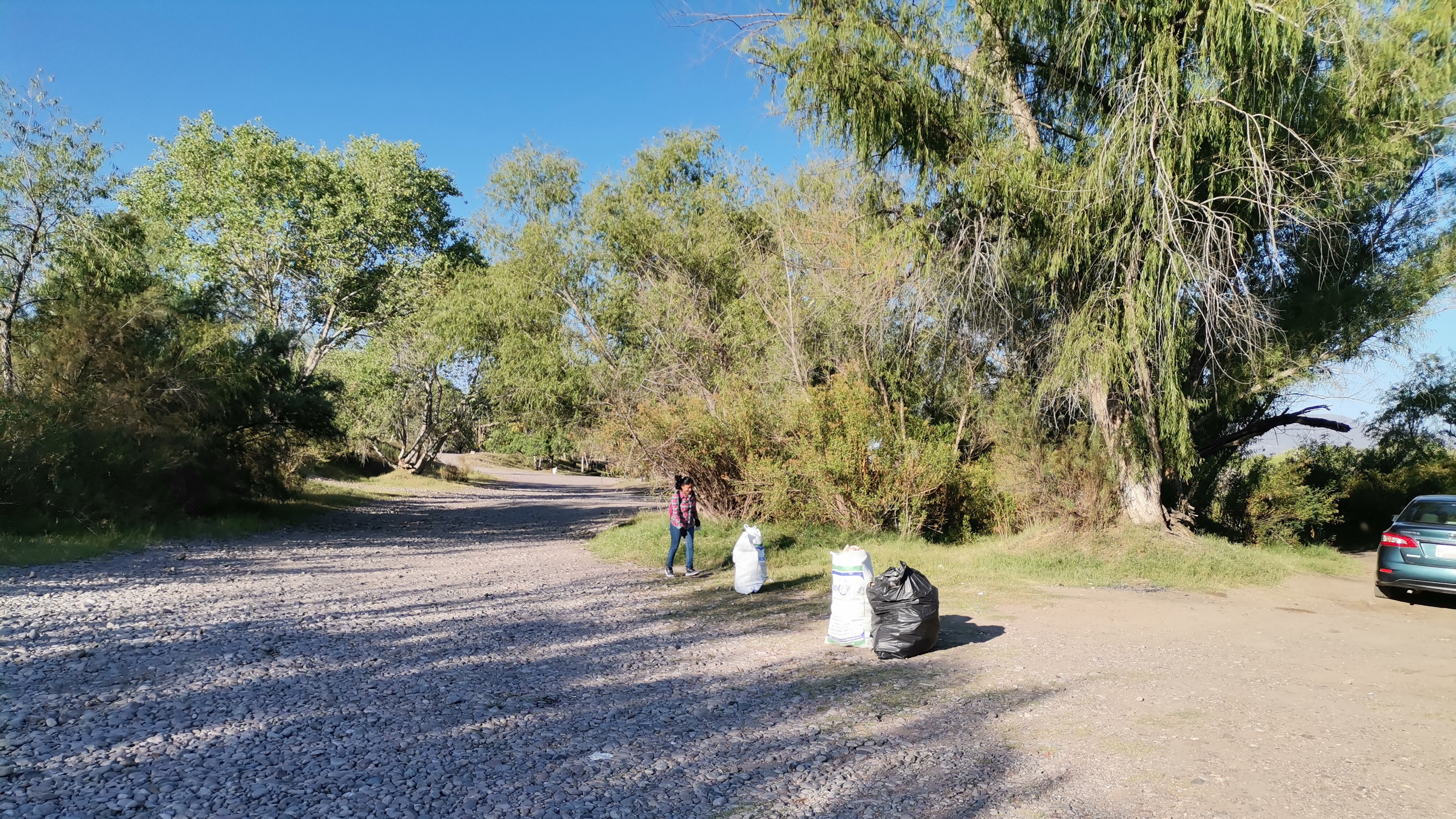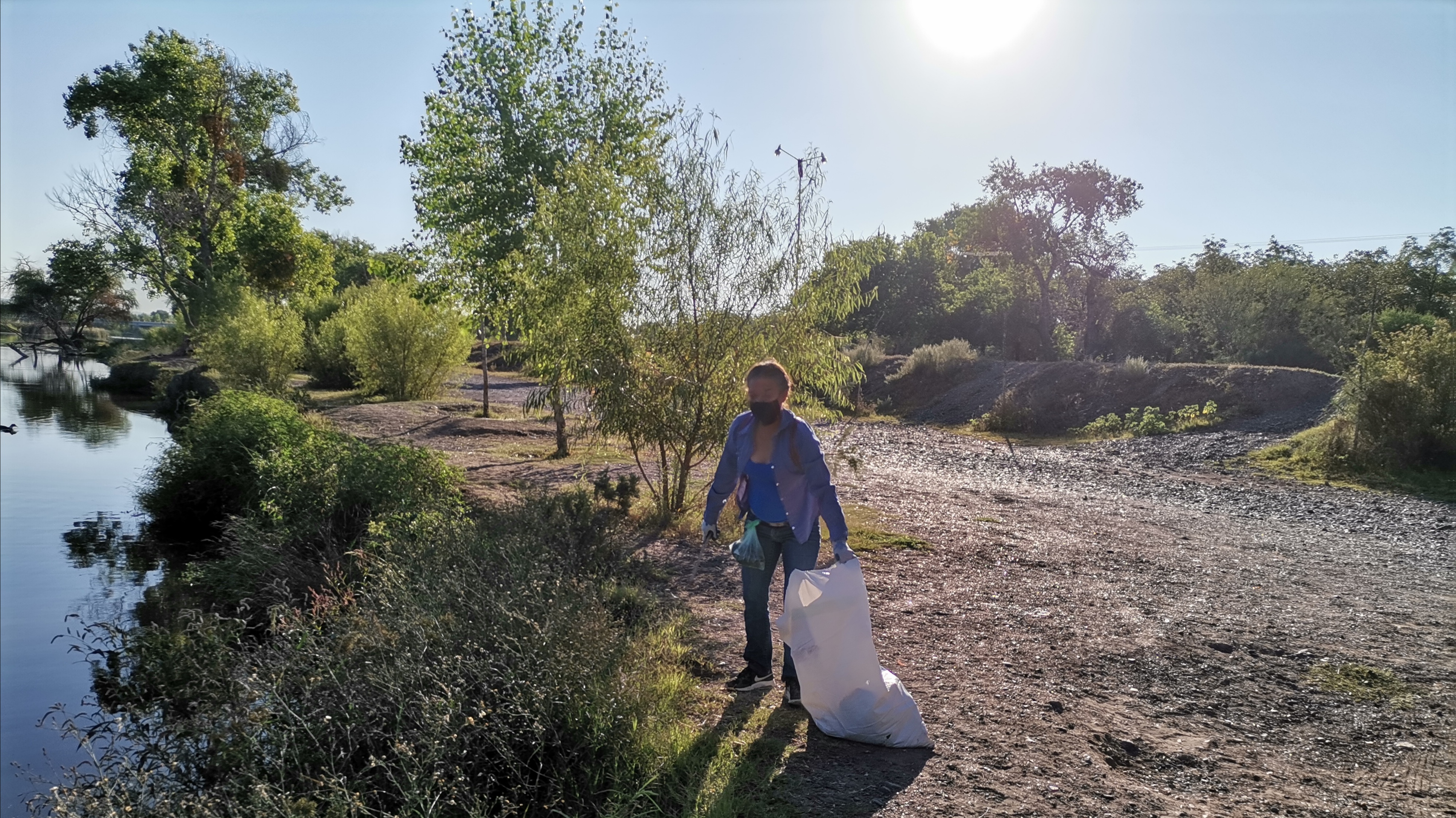 La jornada de limpieza se inició del puente del vado corriente arriba por la ribera sur. Como siempre: bolsas, vasos, botellas; el listado de rutina, todo sacado del agua o la vegetación y depositado en costales para ser retirado del río.