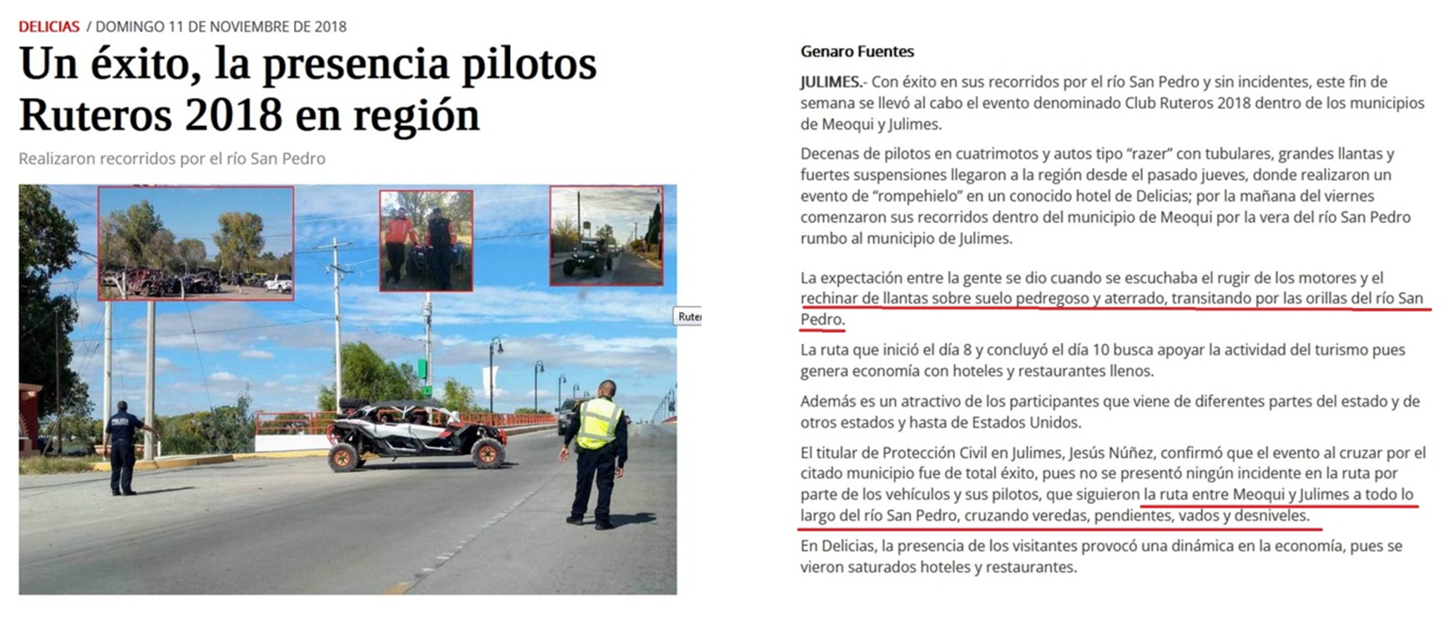 Como hemos mencionado antes, hace falta tener memoria, las siguientes dos “notas” dialogan, la primera es de este año, la segunda de hace cuatro, como se ve, según la conveniencia se cambia el enfoque, el asunto de los razers es algo que las autoridades mismas han propiciado buscando “generar derrama económica”; sería interesante saber cuál es esa “ruta marcada por el gobierno municipal”, y saber qué criterios se tomaron para decir que dicha ruta no daña el ecosistema (5-6).