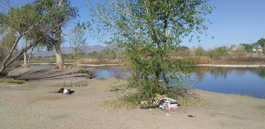 Basura en el área de “los laguitos” (área limpiada por VEERSP tres días antes)
