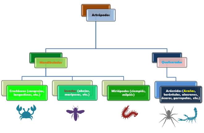 Lo primero que tenemos que saber es que las arañas no son insectos (ver tabla siguiente), aunque sean parientes y algunas especies puedan tener cierto parecido con ellos, pertenecen a grupos de animales diferentes. Las características que distinguen a arañas de insectos más fácilmente son: las arañas no tienen antenas, tienen cuatro pares de patas (los insectos sólo tienen tres pares), no tienen alas, tienen 6 u 8 ojos, y no pasan por etapas de desarrollo como los insectos, es decir, las crías de araña se parecen a los adultos.1