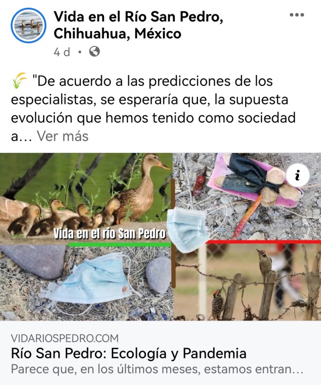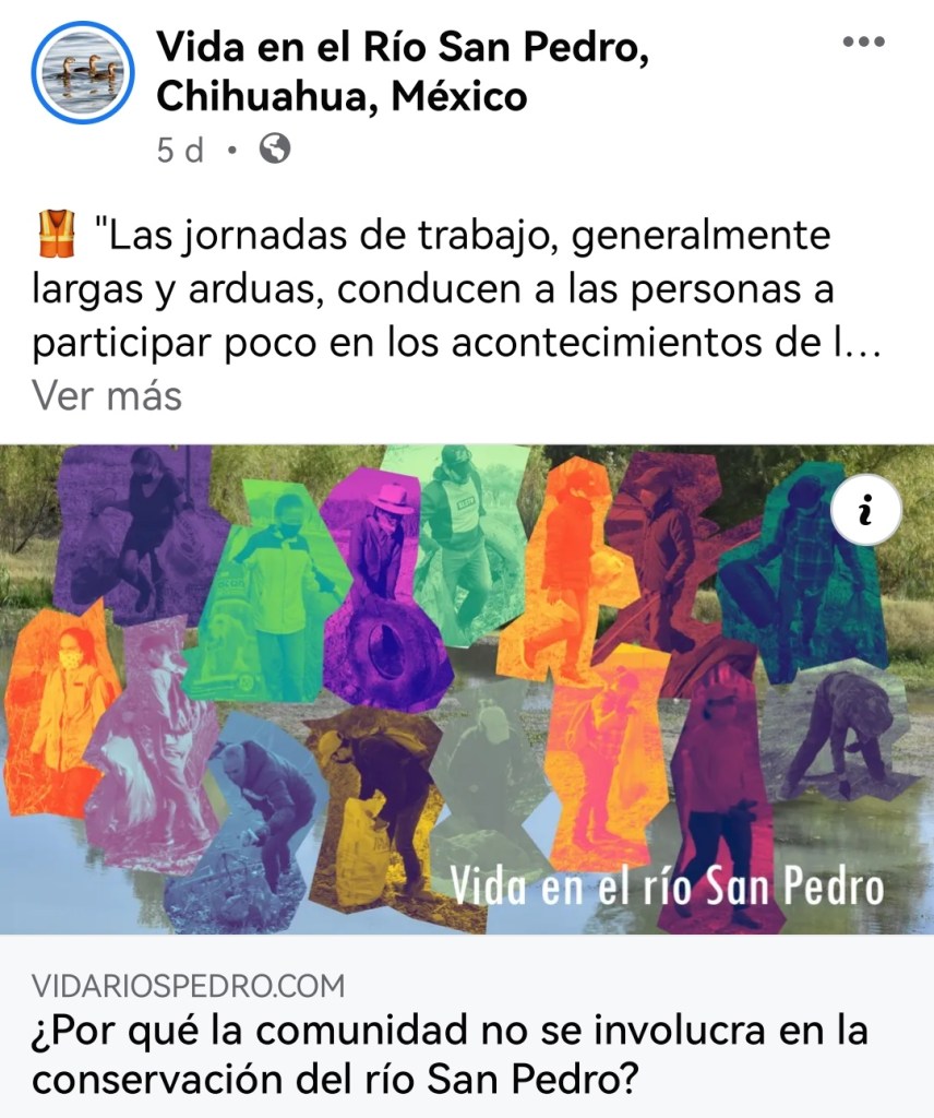 Vida en el río San Pedro constantemente difunde contenido sobre la biodiversidad del río San Pedro, Humedal de Importancia Internacional, y las actividades que tienen una consecuencia negativa en este…