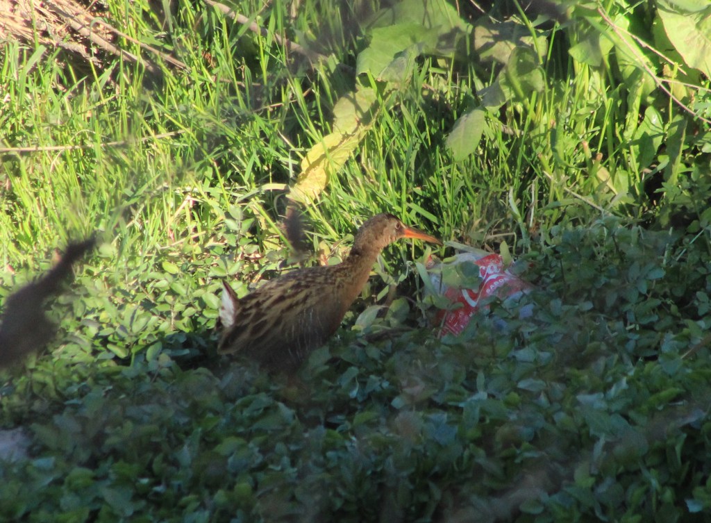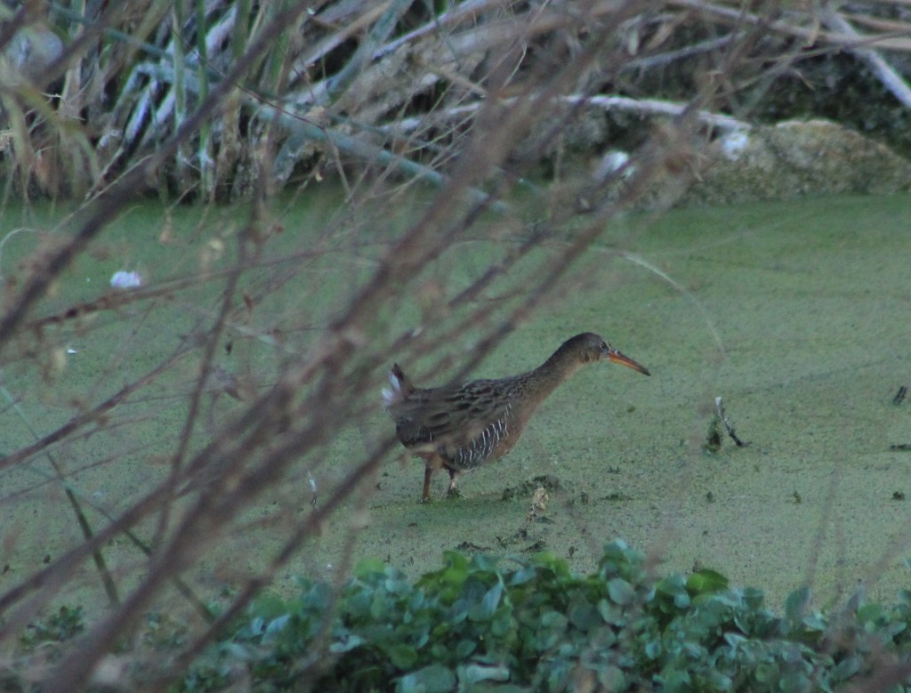 Hoy 15/02/2023, SIN indicación u orden de la alcaldesa, observamos dos individuos de Rascón azteca (Rallus tenuirostris), que, como ya hemos mencionado otras veces, es un ave en peligro de extinción que habita el humedal de Meoqui. Es un ave tímida y por lo general sólo se ve más de uno juntos alrededor de la época de reproducción, es decir, de aquí al verano.