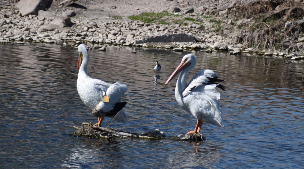 Algunas personas nos han preguntado por los dos pelícanos que, debido a sus lesiones en las alas, estaban varados permanentemente en el río San Pedro, en la zona del vado Meoqui, Chihuahua. Estas lesiones les impiden migrar pasado el invierno al sitio de anidación y reproducción de esta especie, en zonas de Estados Unidos de América y Canadá.