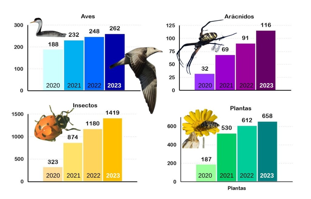 El presente esfuerzo de monitorear, registrar en bases de datos, clasificar y presentar la biodiversidad al público, no es el único, pero sí el primero en incluir a todos los órdenes de vida observados; siendo así el más extenso en cuanto a continuidad (realizado desde el 2020), área de exploración, especies registradas (2,729) y número de observaciones (131,188). Los otros estudios que se han hecho se enfocan principalmente en aves y, en menor medida, plantas.