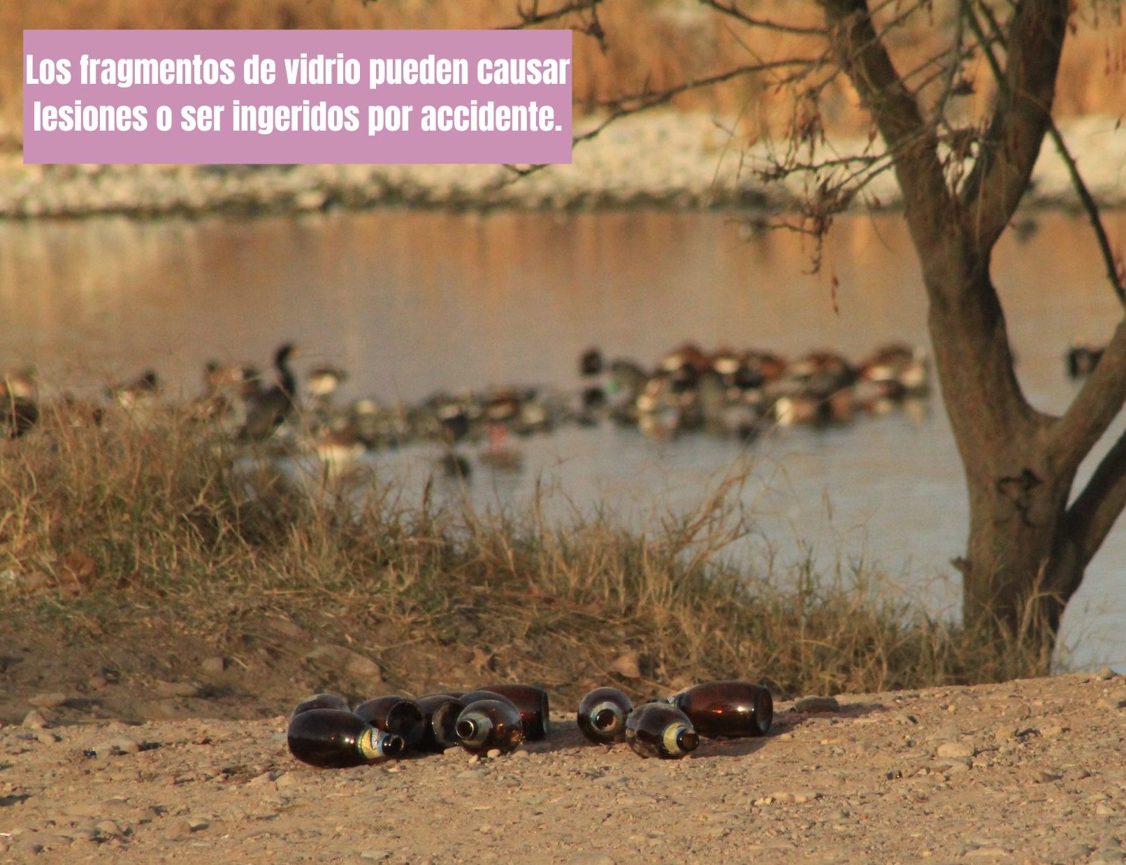 “El vidrio desechado de manera incorrecta puede acumularse en vertederos, donde su lenta descomposición puede durar más de un millón de años, afectando los suelos y entornos acuáticos adyacentes”, además, “los fragmentos de vidrio pueden representar un riesgo para la fauna, ya que pueden causar lesiones o ser ingeridos accidentalmente, lo cual puede ser fatal” (4).