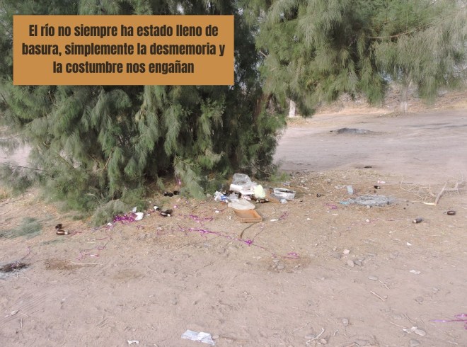 Con eso nos damos cuenta de que, a menos que ustedes tengan algo que decir al respecto, al río no pertenecen: ni las botellas de vidrio, ni el papel, ni el asfalto, ni las aguas negras, ni el escombro. Es decir, son ajenos a las características y propiedades naturales del ecosistema. Por definición son contaminantes, no vemos porque tengamos que tratar de justificar con “no es tan grave” o “es menos contaminante”. Si alguien llega y le da una cachetada, usted no piensa “una cachetada es lo que menos duele”, no, cualquier golpe está mal; o ¿Será que ya nos hemos desensibilizado al grado de que sólo importa si es “lo peor que pudiera ser”? ¿Que si sería lo peor?