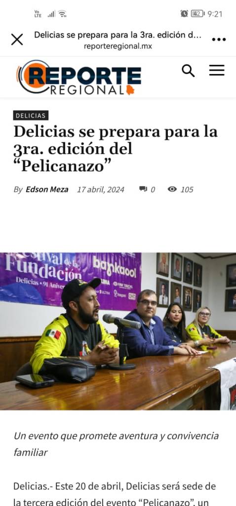 - Meza, E. (17 de abril de 2024). Delicias se prepara para la 3ra. edición del “Pelicanazo”. Reporte Regional. Recuperado de https://reporteregional.mx/2024/04/17/delicias-se-prepara-para-la-3ra-edicion-del-pelicanazo/
