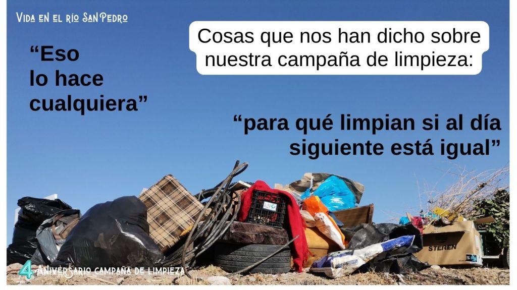“Eso lo hace cualquiera”, “para que limpian si al día siguiente está igual”. Son un ejemplo de las cosas que nos han dicho sobre nuestra campaña de limpieza del río San Pedro.